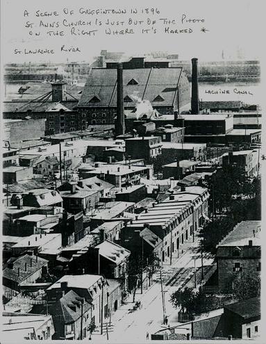 LOCATIONGriffintown was located in Montreal, Province of Quebec, Canada. It was once a working-class neighbourhood stretching as far north as Notre-Dame street and bounded on the east by McGill street and on the west by Guy Street. One of the main roads through the area was Dalhousie Street. It was oriented in a North-South axis and, according to former resident Terrance Flanagan, "was probably never more than 300 or 400 yards in length at any period of time. One end was anchored on a place called Haymarket Square and the other end butted up against the Lachine Canal." NOTE: "Griffintown" was a Nineteenth Century colloquial name and is not commonly used in the present day. The actual name of the area is Saint Ann's Ward. |